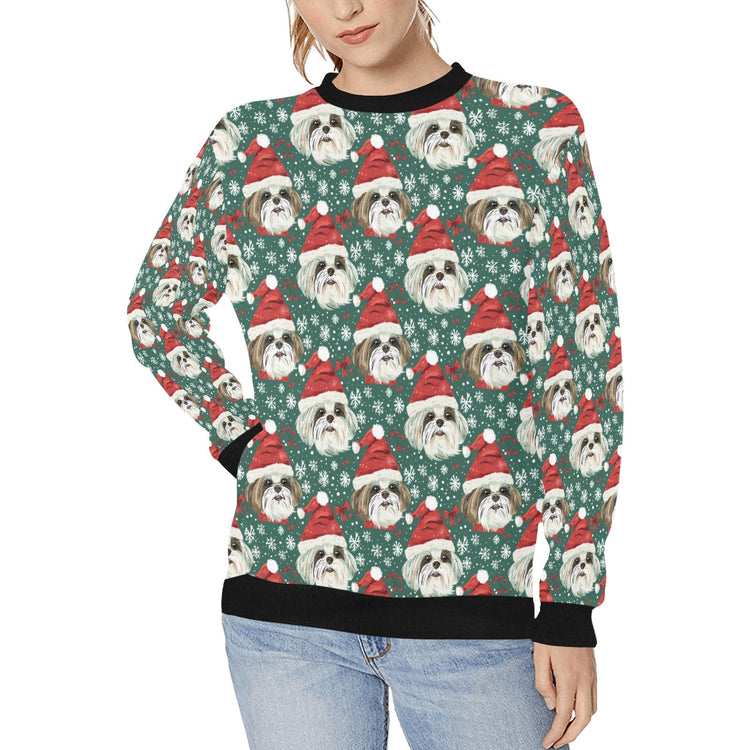 Wrap yourself in festive cheer with the Jingle Fuzz Shih Tzu Christmas Sweatshirt for Women!