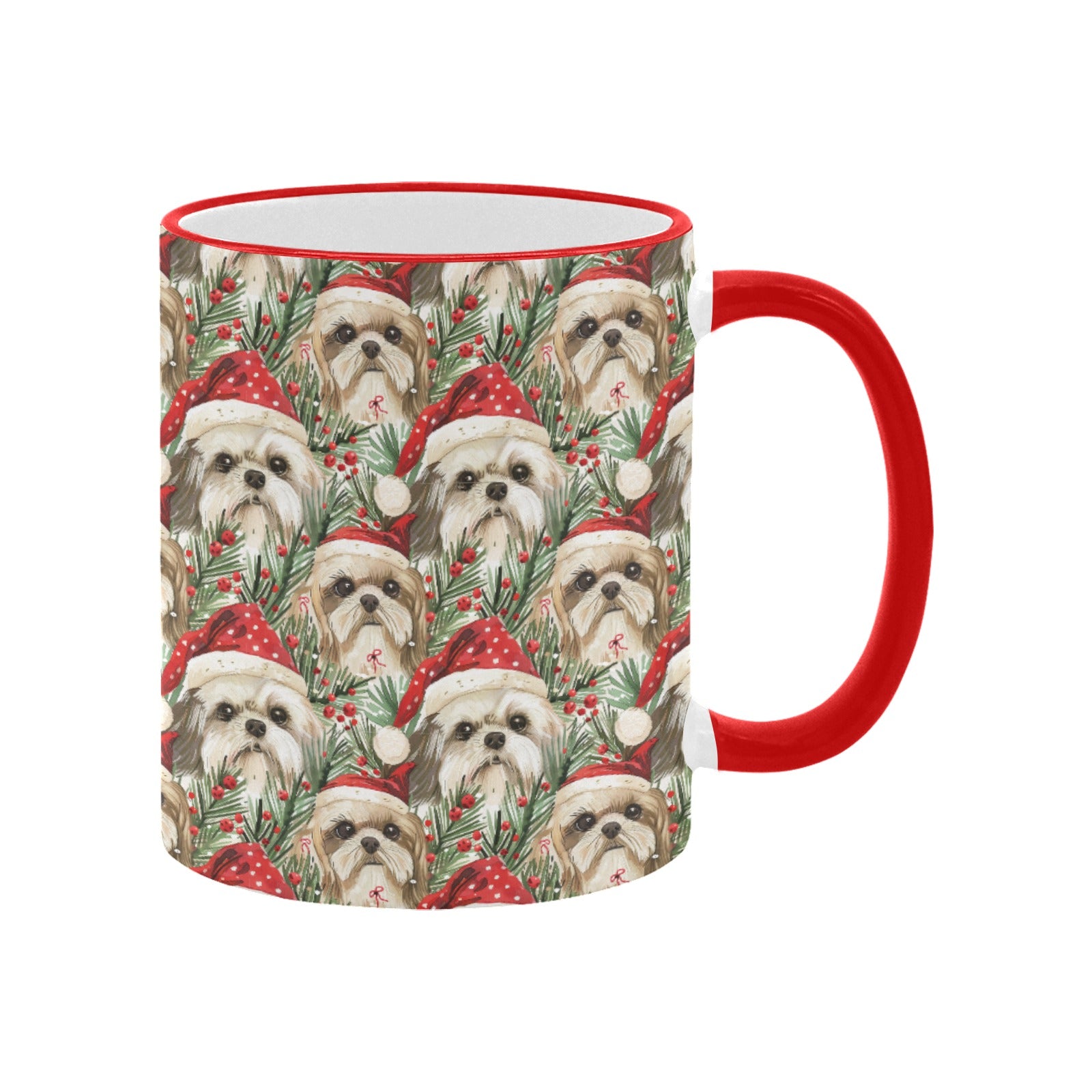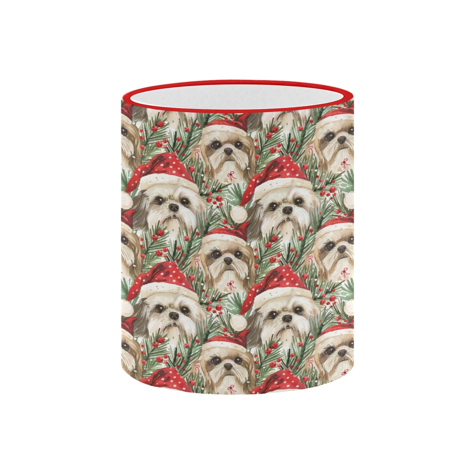 This delightful mug features Shih Tzus in festive Santa caps, radiating warmth and happiness that will brighten your mornings.