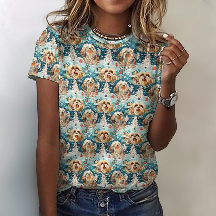 Celebrate the holiday season with our Winter Whiskers Shih Tzu Christmas Women's Cotton T-Shirt, a heartfelt gift for Shih Tzu lovers.