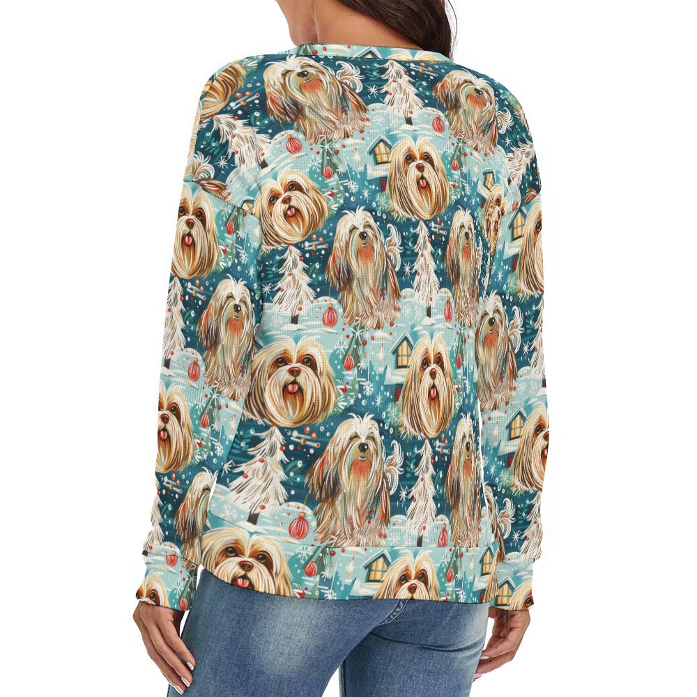Celebrate the joy of the holiday season with our Winter Whiskers Shih Tzu Women's V-Neck Christmas Sweater!