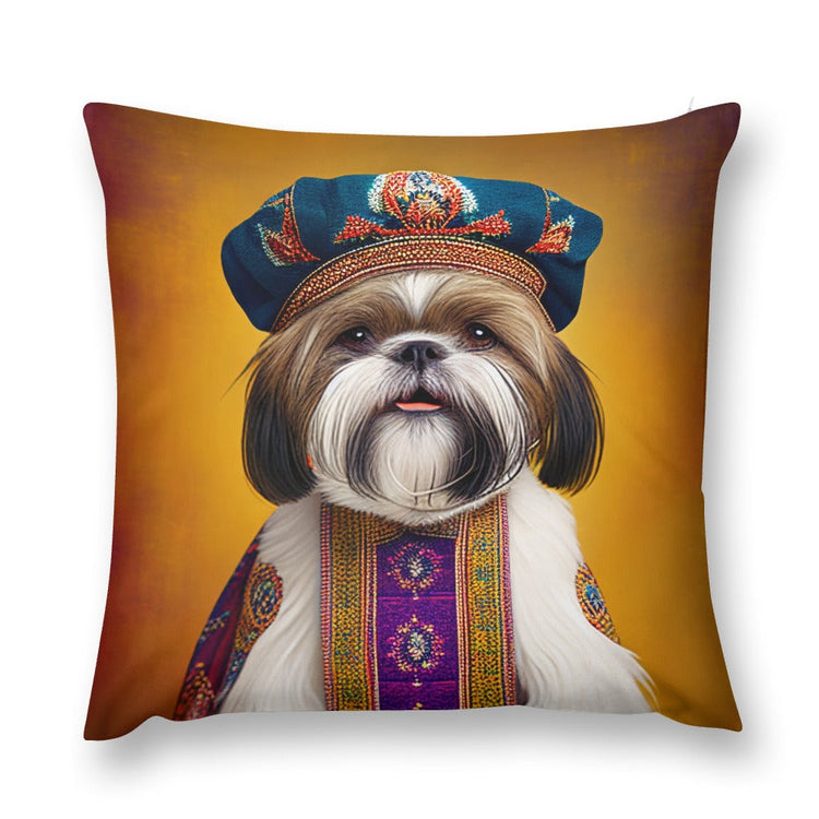 This exquisite pillow case features a whimsical portrayal of a Shih Tzu, capturing the essence of historical grandeur.