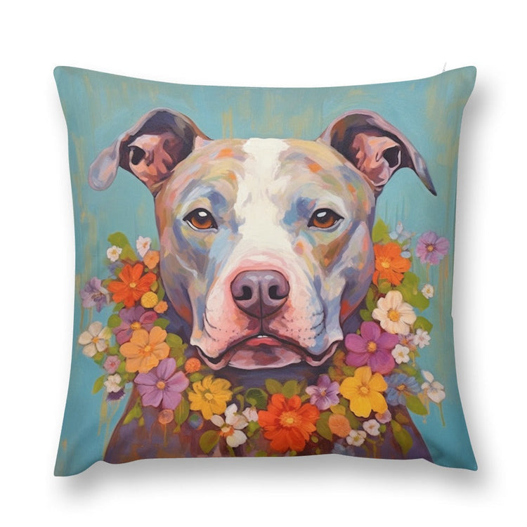 Embrace the tender side of the noble Pit Bull Terrier with our "Floral Embrace" Plush Pillow Case.