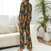 This festive pajama set features vibrant Pit Bull artwork, capturing their robust and gentle nature. Each Pit Bull dons a playful expression, embodying the breed's affection and loyalty.