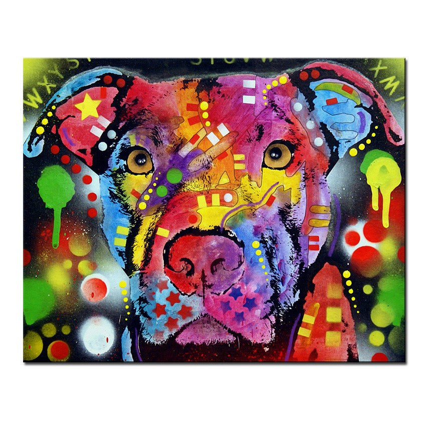 Made with eco-friendly inks printed on Canvas, and featuring a multi-colorful American Pit Bull Terrier design!