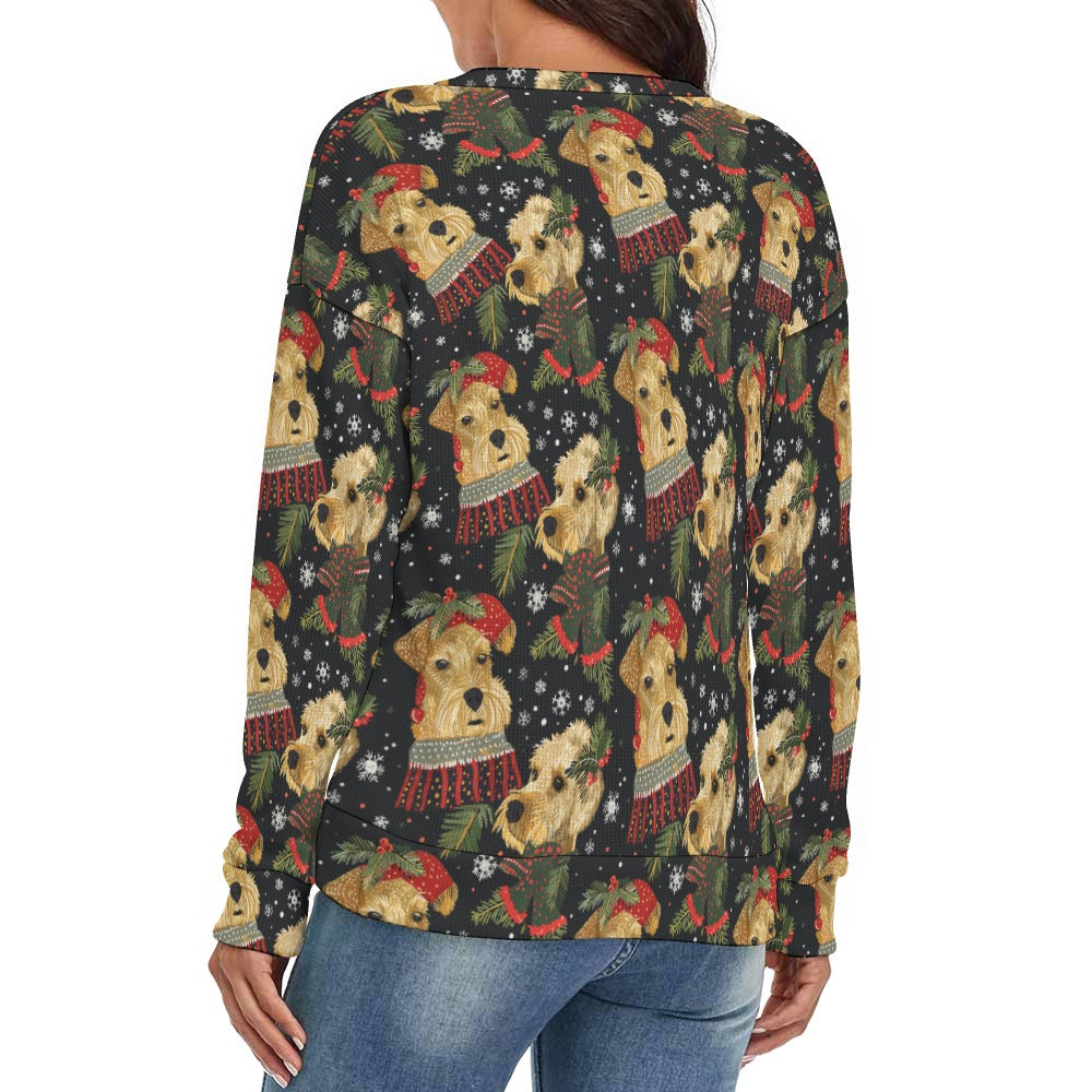 Mistletoe and Muzzles Airedale Terriers Women's V-Neck Christmas Sweater