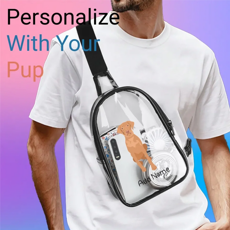 Celebrate your Vizsla with our Personalized Vizsla Love Unisex Transparent Sling Bag. Customize it with your pup's likeness and name, capturing their true coat color.
