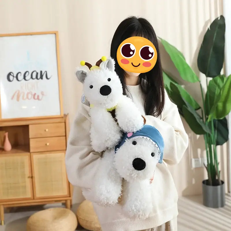 This charming plush toy features a fluffy white coat, designed to resemble a lovable West Highland White Terrier, complete with a cute black nose and sparkling eyes.