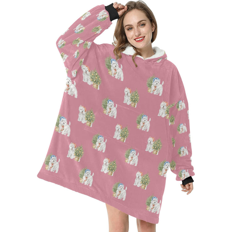 Watercolor Celebration Westie Christmas Blanket Hoodie for Women