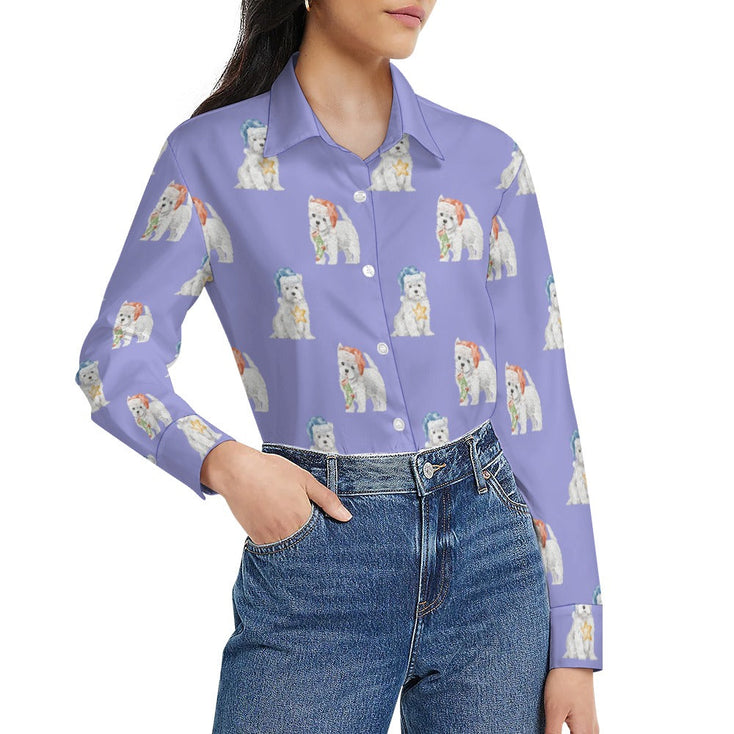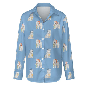 Watercolor Delight Westie Puppies Christmas Women's Shirt