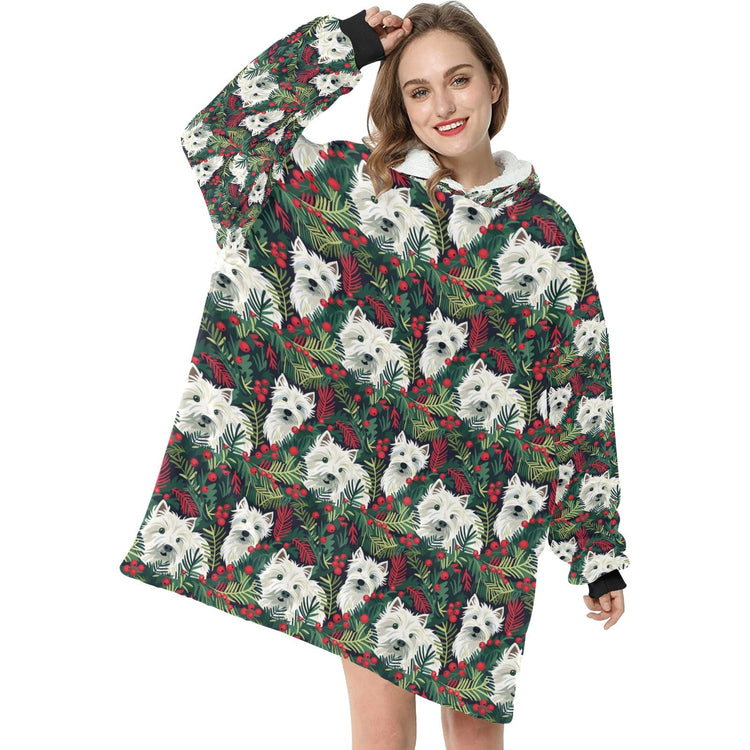Wrap yourself in festive cheer with the Christmas Canopy Westie's Blanket Hoodie!