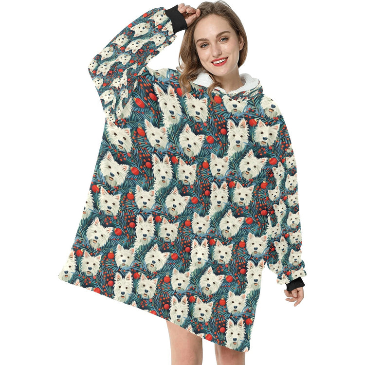 Mistletoe and Westies Christmas Blanket Hoodie