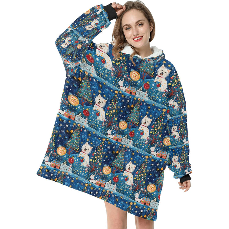 Winter Whimsy Westies Christmas Blanket Hoodie