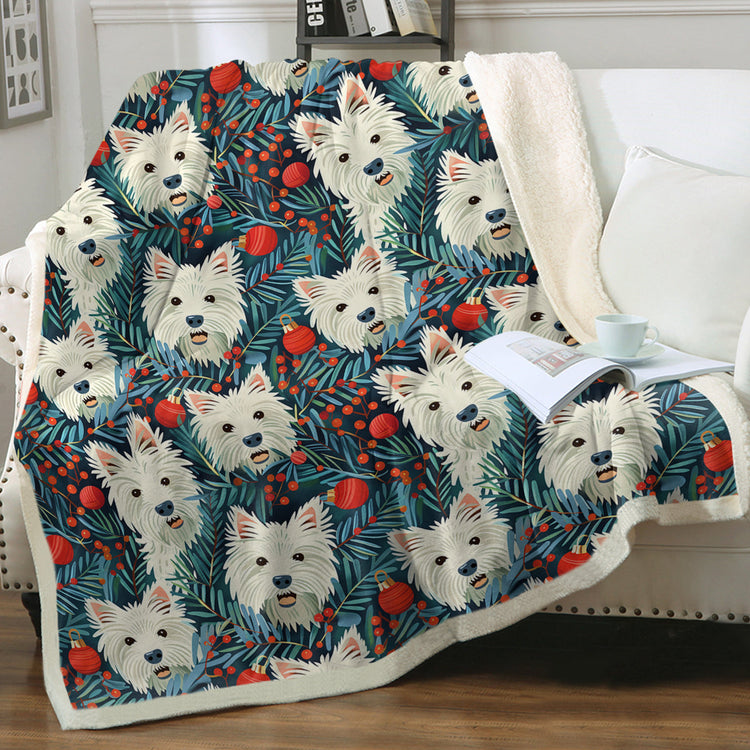 Mistletoe and Westies Christmas Soft Warm Fleece Blanket