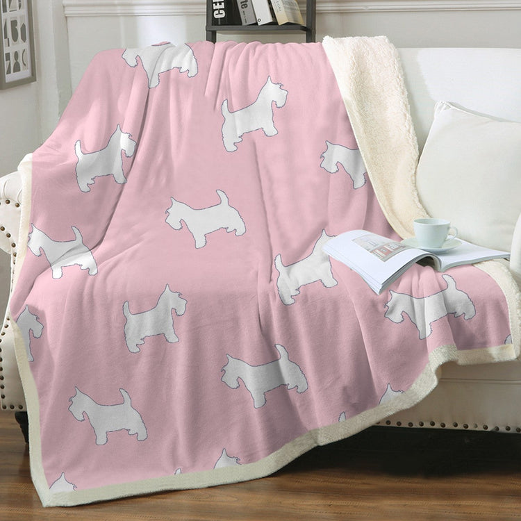 Featuring the charming silhouettes of the cutest Westies, this blanket showcases the essence of their elegant and classic appeal. With its simple yet captivating design, it's a true testament to the enduring charm of these beloved dogs.