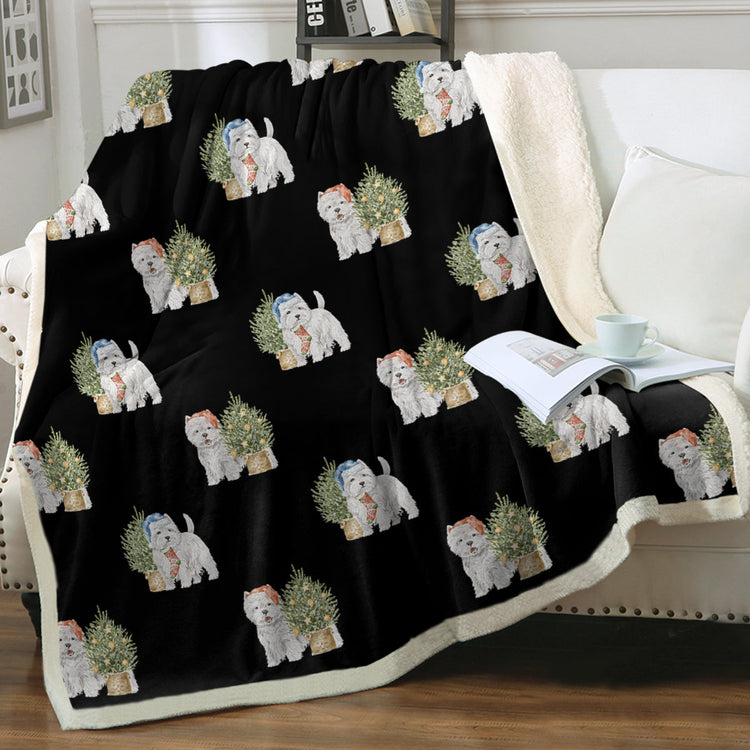 Westie Christmas Blanket - Watercolor Celebration Westie - Sherpa Fleece