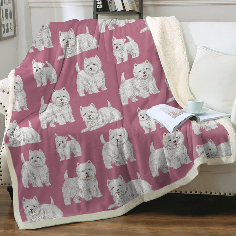 Wrap yourself in warmth and affection with the Watercolor Symphony Westies Warm Sherpa Fleece Blanket.
