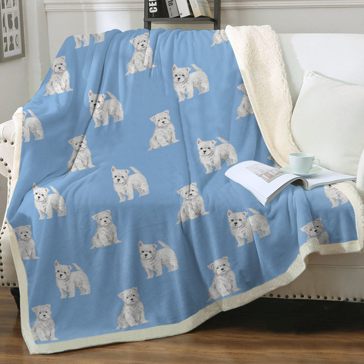 Watercolor Westie Puppies Warm Sherpa Fleece Blanket - 8 Colors-Blanket-Bedding, Blankets, Home Decor, West Highland Terrier-Cornflower Blue-Single-16