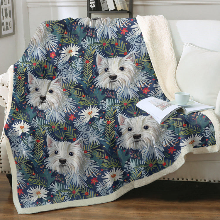 Westie Christmas Blanket - Winter Garden Westie Christmas - Sherpa Fleece