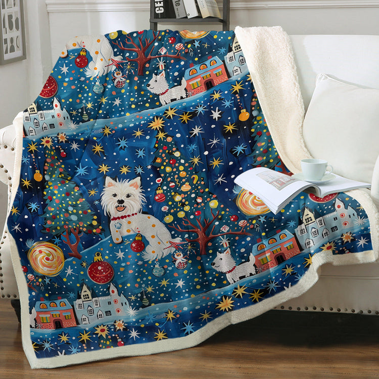 Westies Christmas Blanket - Whimsical Winter Westies Christmas - Sherpa Fleece