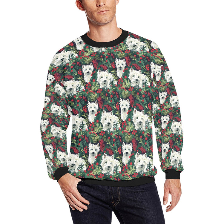 This cozy sweatshirt features adorable West Highland White Terriers amid lush greenery and vibrant red berries. Each Westie's unique personality shines through, making it a perfect gift for dog lovers.
