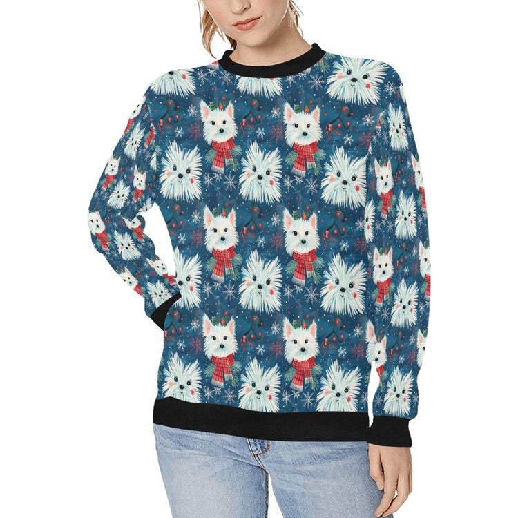 Frosty Whiskers Westie Christmas Sweatshirt for Women