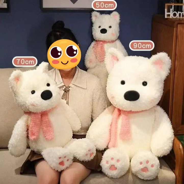 This adorable plush captures the essence of the beloved West Highland White Terrier, making it a perfect companion for dog lovers. Its cartoonish style features fluffy white fur, upright ears with pink insides, and a charming round black nose.