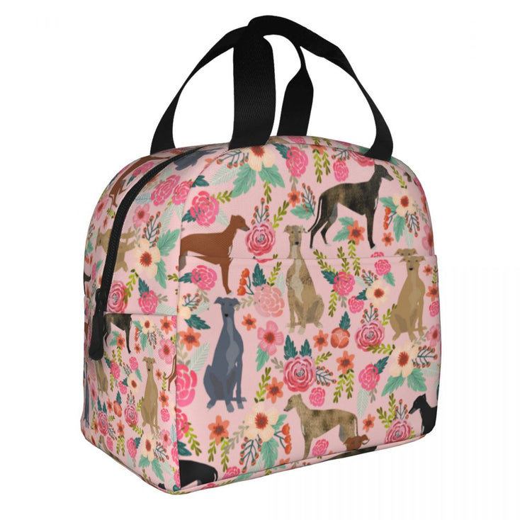 Greyhounds / Whippets in Bloom Insulated Lunch Bags with Exterior Pocket