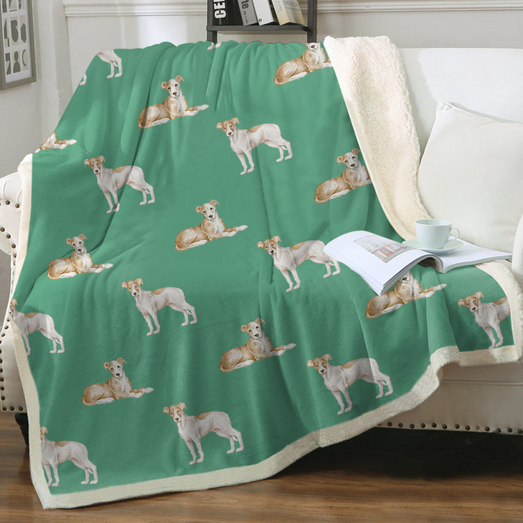 Watercolor Fawn Red White Greyhounds Whippets Blanket - 8 Colors-Blanket-Bedding, Blankets, Greyhound, Home Decor, Whippet-Mint Green-Single-19
