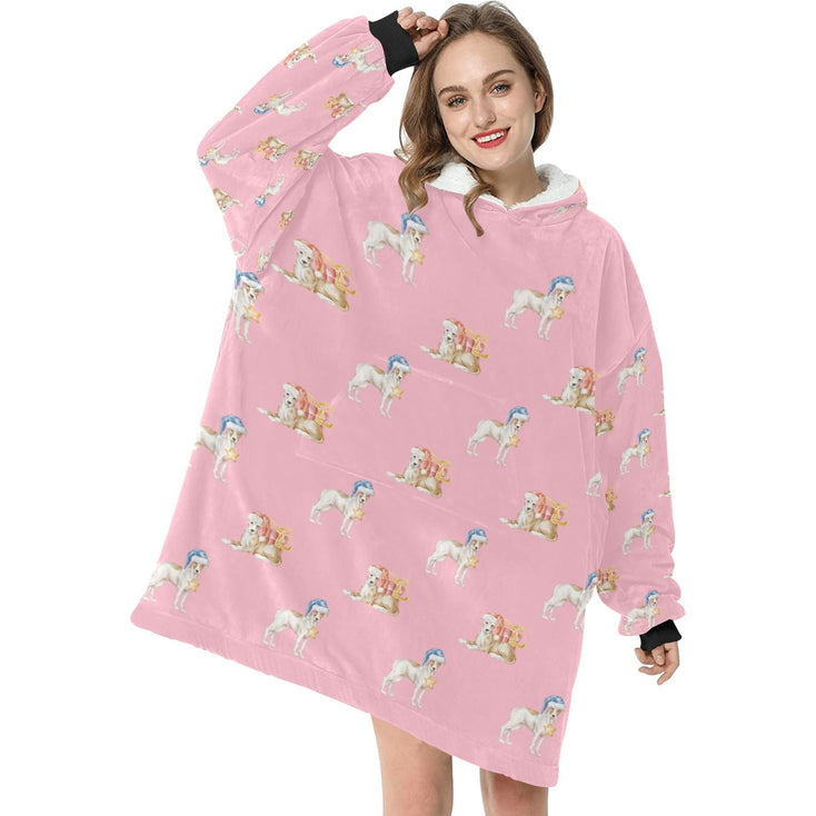 Watercolor Fawn Red White Whippets Christmas Blanket Hoodie-Blanket-Apparel, Blanket Hoodie, Blankets, Dog Mom Gifts, Greyhound, Whippet-Light Pink-ONE SIZE-16