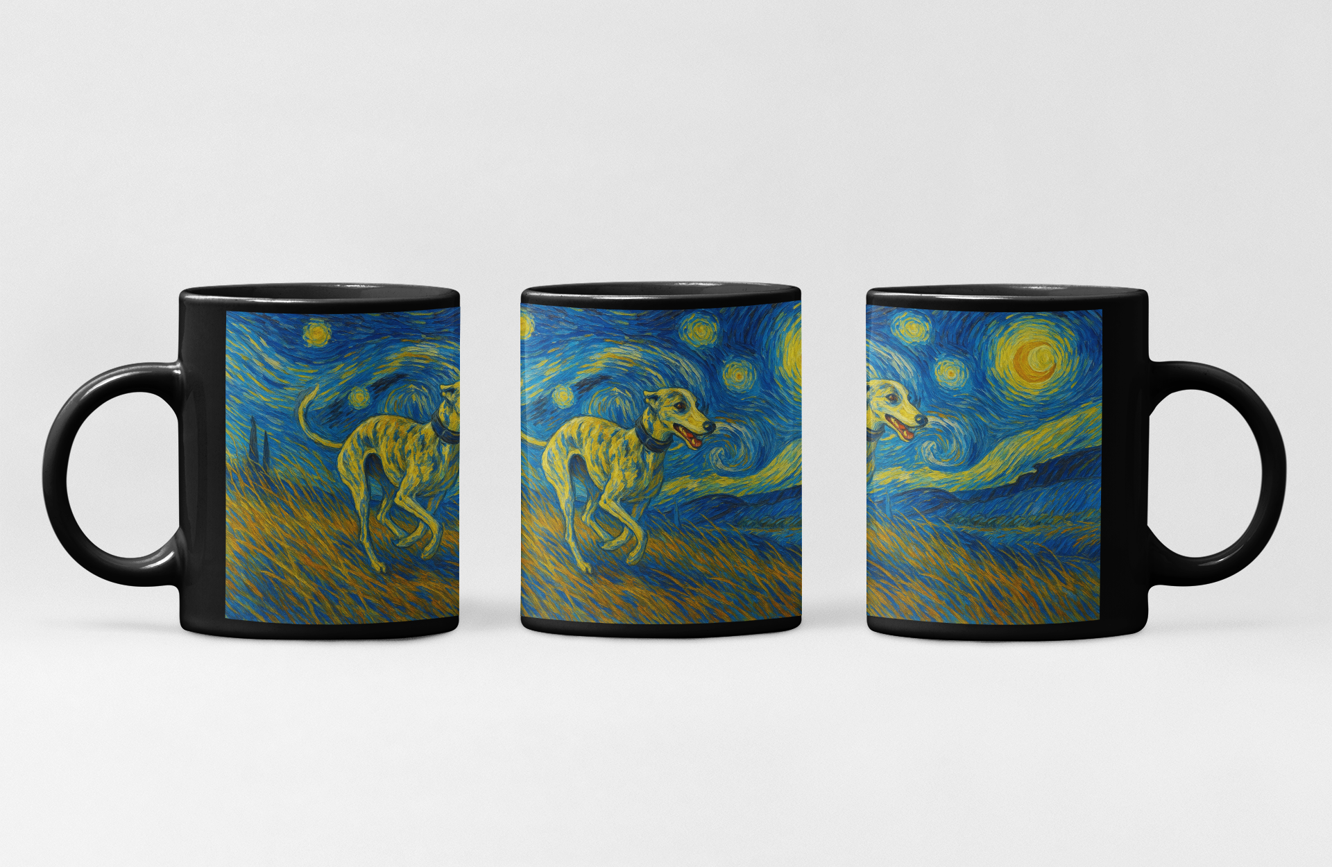 Celebrate your love for Whippets with a personalized touch that warms the heart! Our Personalized Starry Night Artwork Whippet Coffee Mug is a unique way to showcase your furry friend while enjoying your favorite beverage.