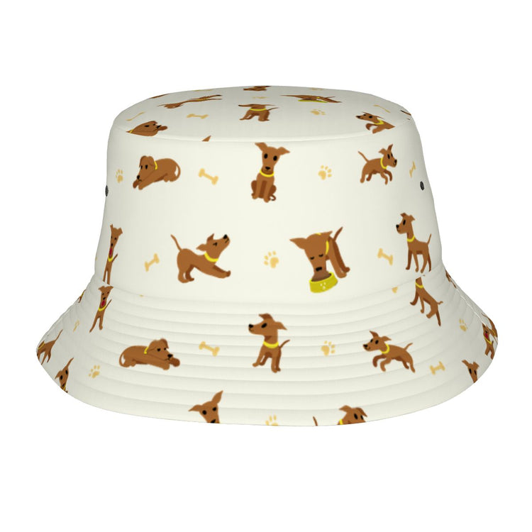 Happy Happy Whippet Love Bucket Hat-Hats & Caps-Light Pink-One Size-41