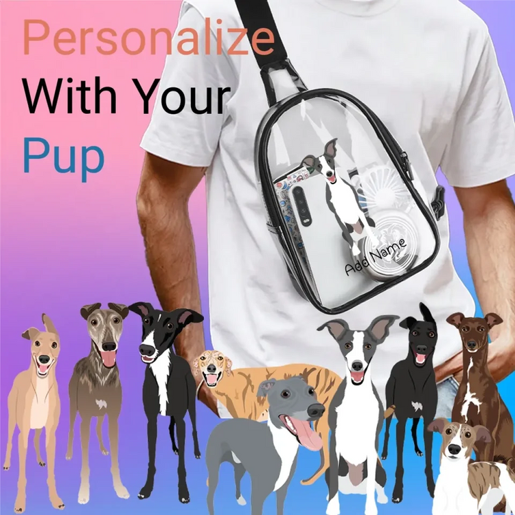 Our Personalized Greyhound/Whippet Unisex Transparent Sling Bag is a heartfelt tribute to your beloved pet. Customize it with your pup's likeness and name, capturing their true coat color.