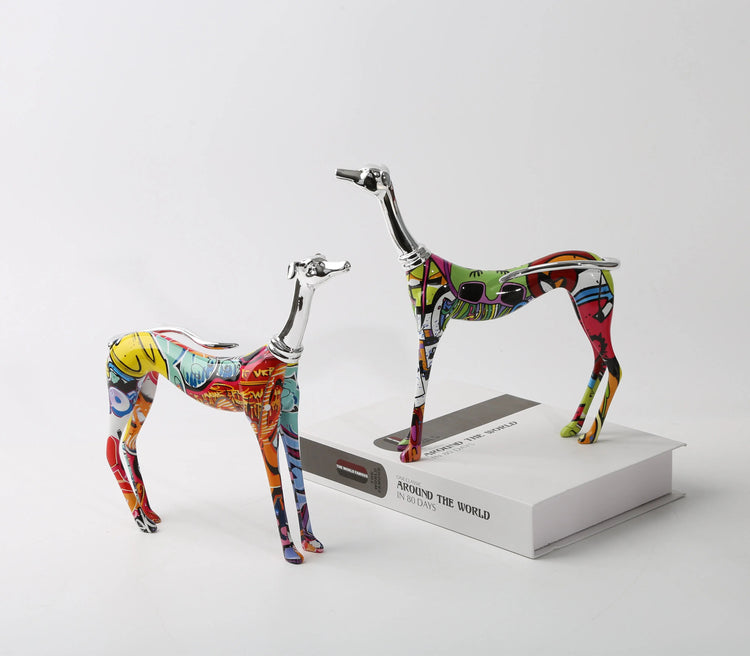 Crafted from high-quality resin with electroplated silver tips, these statues capture the sleek elegance of Greyhounds or Whippets. The hydro art design adds a modern and artistic touch, making them a standout piece in any setting.