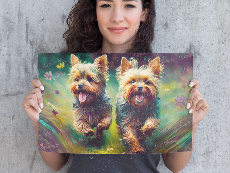 Immerse yourself in the vibrant world of our Joyful Exuberance Yorkies Wall Art Poster, a masterpiece that captures the essence of the spirited Yorkshire Terrier.