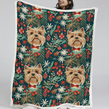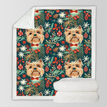 Holly Jolly Yorkie Christmas Soft Warm Fleece Blanket