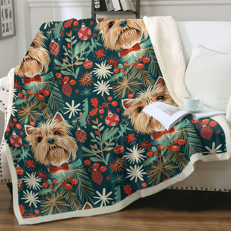 Holly Jolly Yorkie Christmas Soft Warm Fleece Blanket