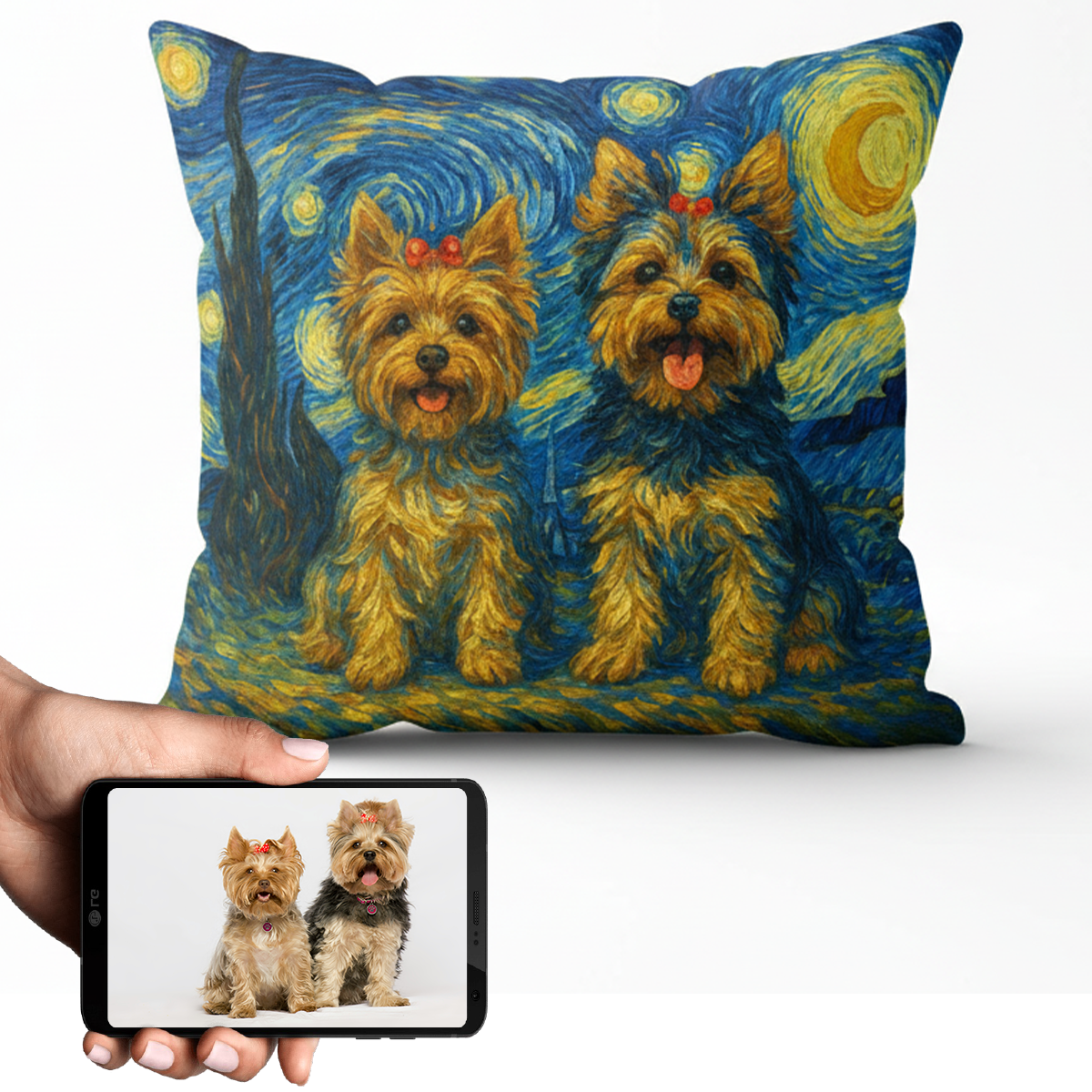 Personalized Starry Night Artwork Custom Yorkshire Terrier Pillowcase-Home Decor-Dog Dad Gifts,Dog Memorial Gifts,Dog Mom Gifts,Home Decor,Personalize Artwork,Pillows,Yorkshire Terrier-1