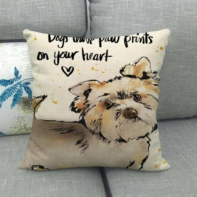 Made of cotton and linen and featuring the cutest “Dogs have paw prints on your heart” Yorkshire Terrier design.