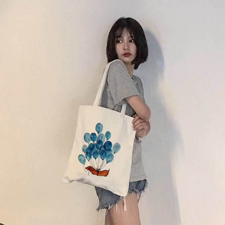 Take your Dachshund love all around town! With this cutest balloon Dachshund print canvas tote bag.