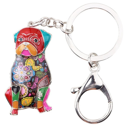 Available in six unique color combinations, these beautiful sitting Pug keychains are a pure delight for any Pug lover!