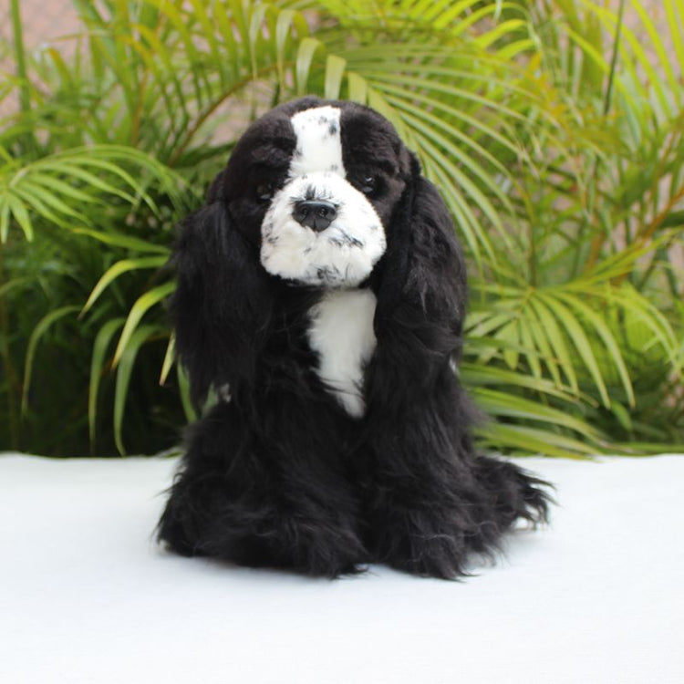 Adorn your space with the charm and elegance of the Cocker Spaniel breed, with our exquisite Black and White Cocker Spaniel Stuffed Animal Plush Toy.