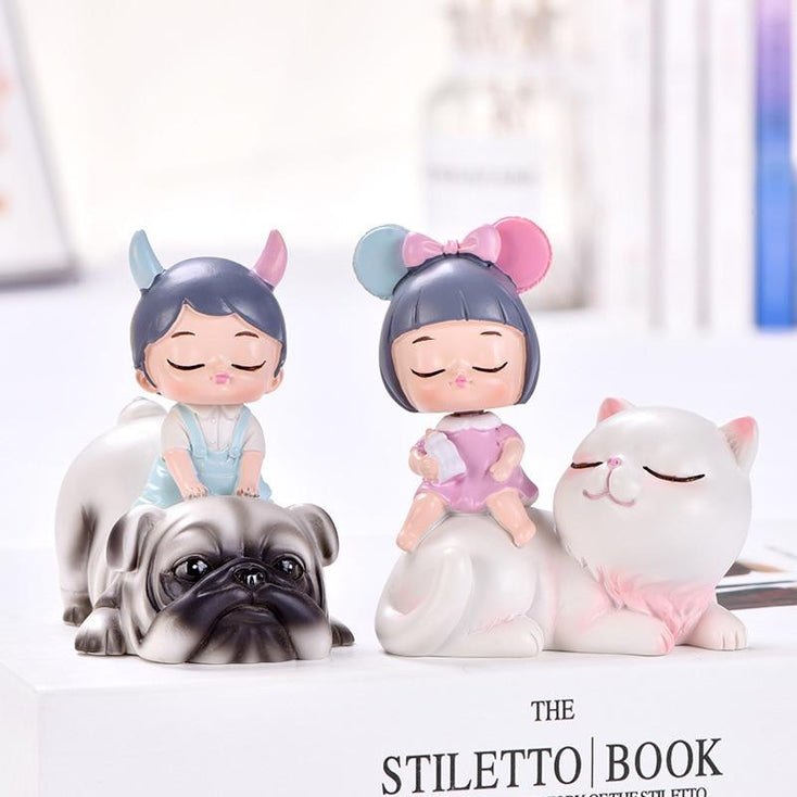 Featuring the cutest boy sitting on a Pug design. Part of a larger collection of bobbleheads with a Girl with Cat, Girl with Whale and Boy with Seal. Place it alone of with friends in your car, office desk, kids rooms or anywhere you please!