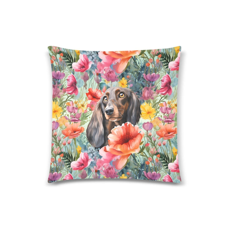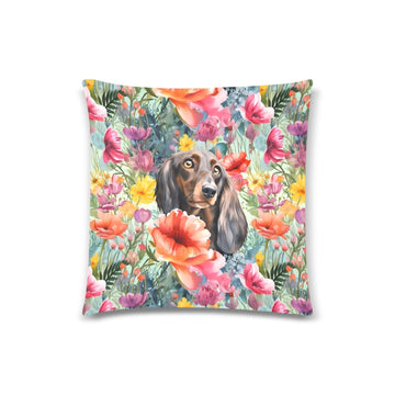Chocolate Tan Dachshund Floral Bloom Throw Pillow Cover