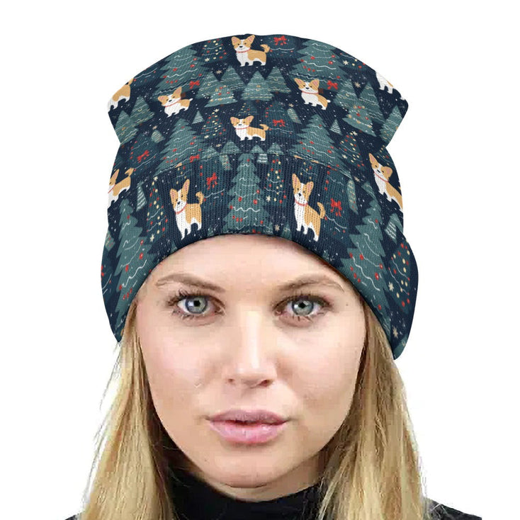 This Corgi Christmas Tree Mosaic Warm Christmas Beanie is a heartwarming holiday accessory. It features adorable Welsh Corgis frolicking among beautifully decorated Christmas trees.