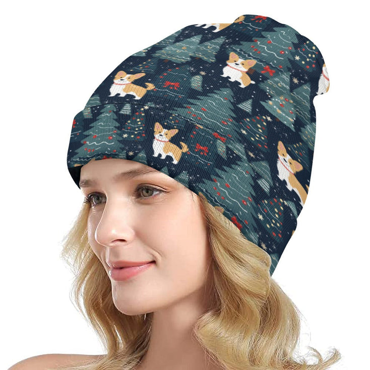 Corgi Christmas Tree Mosaic Warm Christmas Beanie