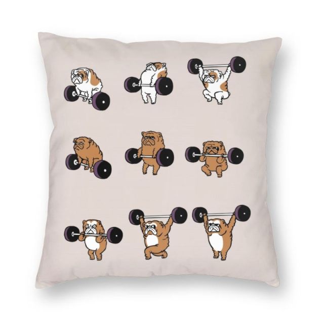 Cute Weightlifting English Bulldog Throw Pillowcase