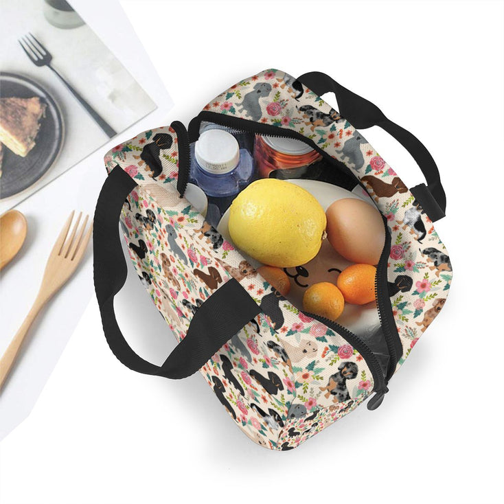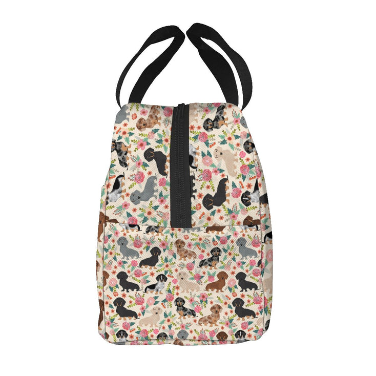 Dachshunds in Bloom Insulated Lunch Bags with Exterior Pocket