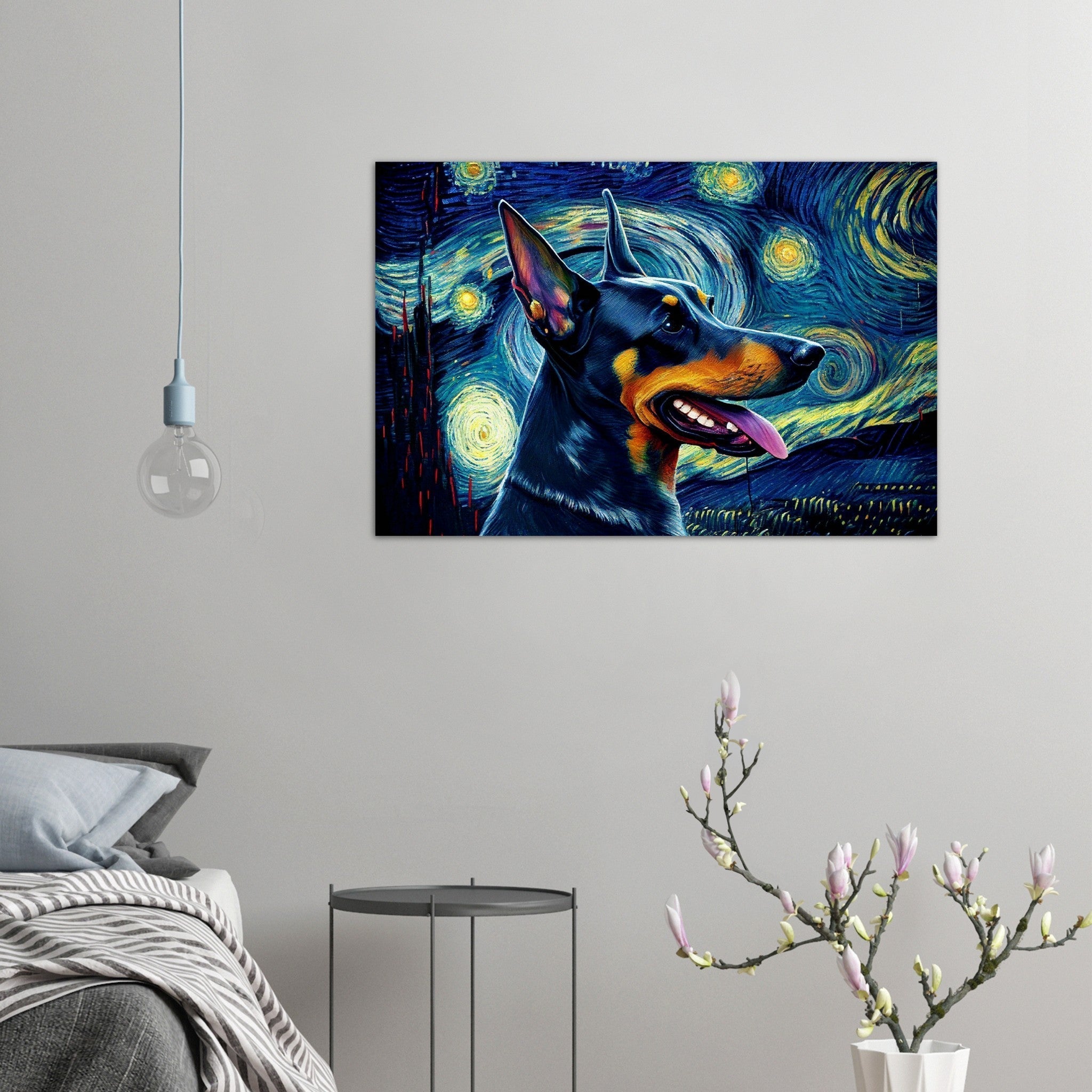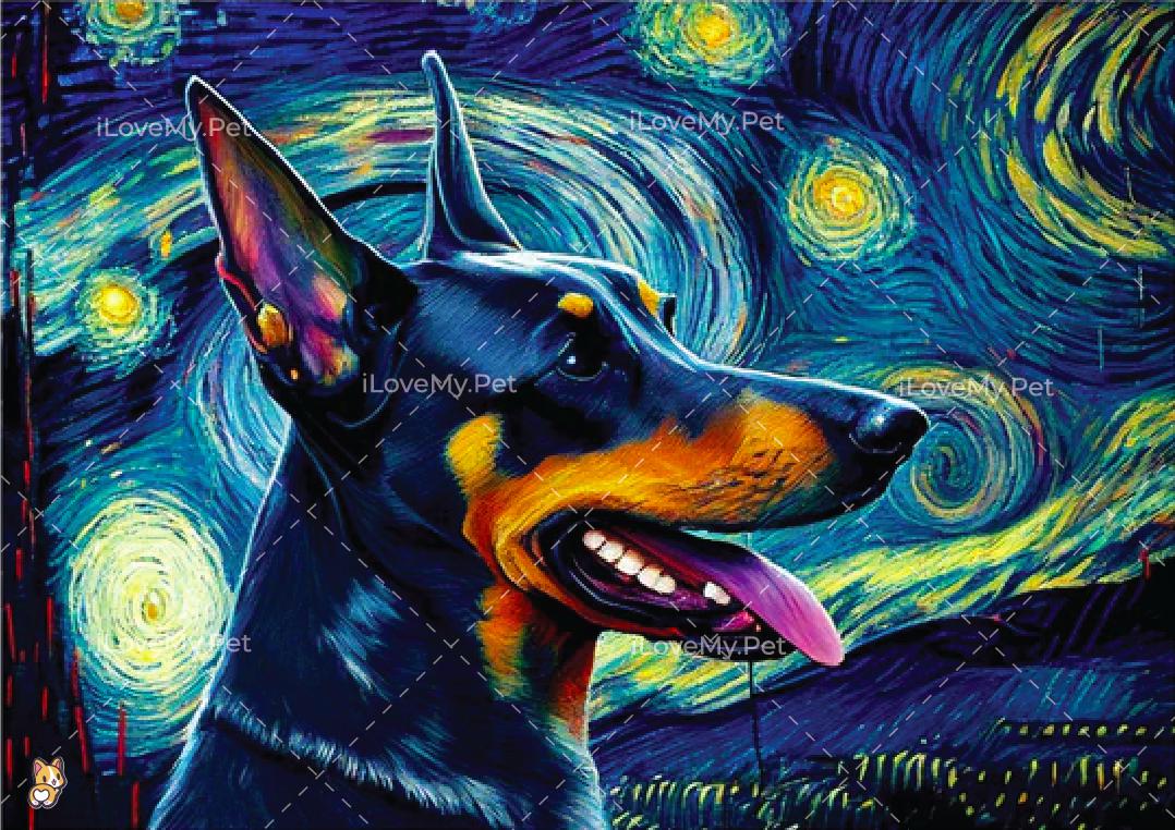 Bring beauty to any room with this vibrant and adorable Doberman wall art poster!