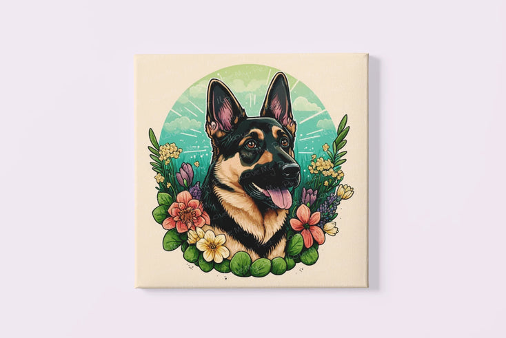 Embrace the playful charm and intelligence of the German Shepherd with our 'Floral Serenity German Shepherd Wall Art Poster'.