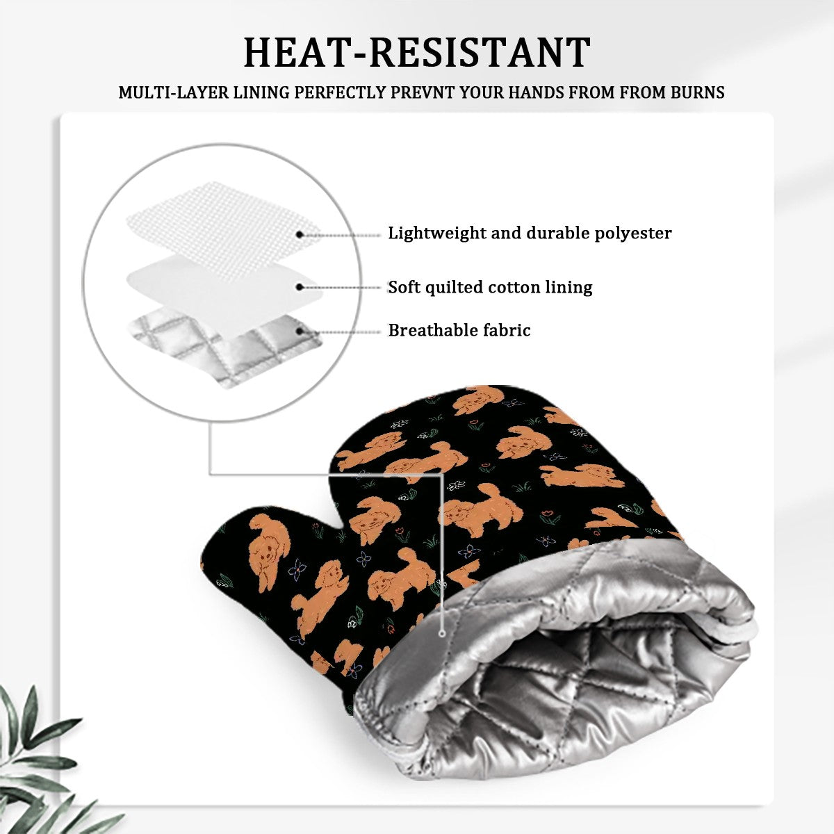 Flower Garden Doodle Love Oven Mitts and Pot Holder Set-Kitchen Decor-Accessories,Dog Mom Gifts,Doodle-6